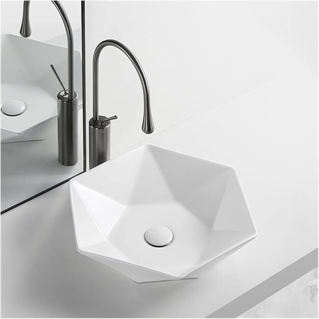- Forma y Diseño: Como su nombre sugiere, el lavamanos tiene una forma hexagonal, con seis lados que crean un diseño geométrico interesante. Esta forma puede variar en términos de ángulos y dimensiones, pero en general, tiene un aspecto moderno y elegante.